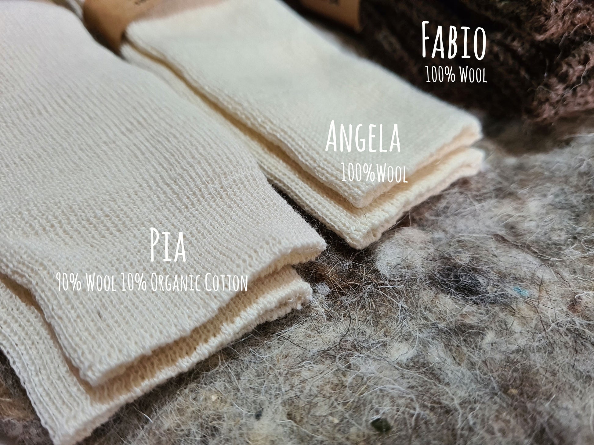 Our lightest wool knit for adults and children in a longer form. Made from 90% undyed wool with 10% unbleached and un-coloured organic cotton. Perfect for all year round. Because they are made from completely breathable fibres they don't hold odour or cause you to sweat like synthetics do.